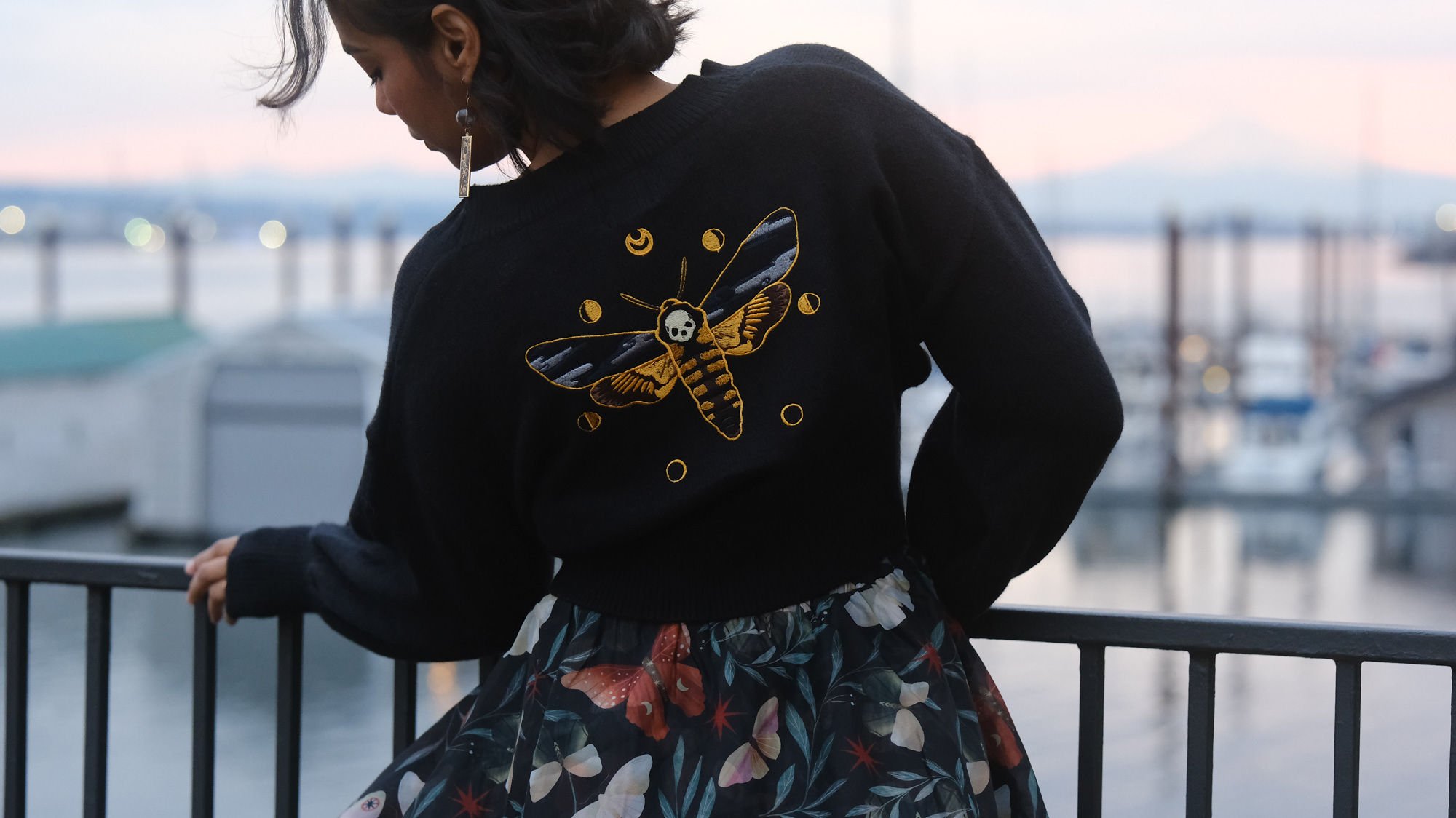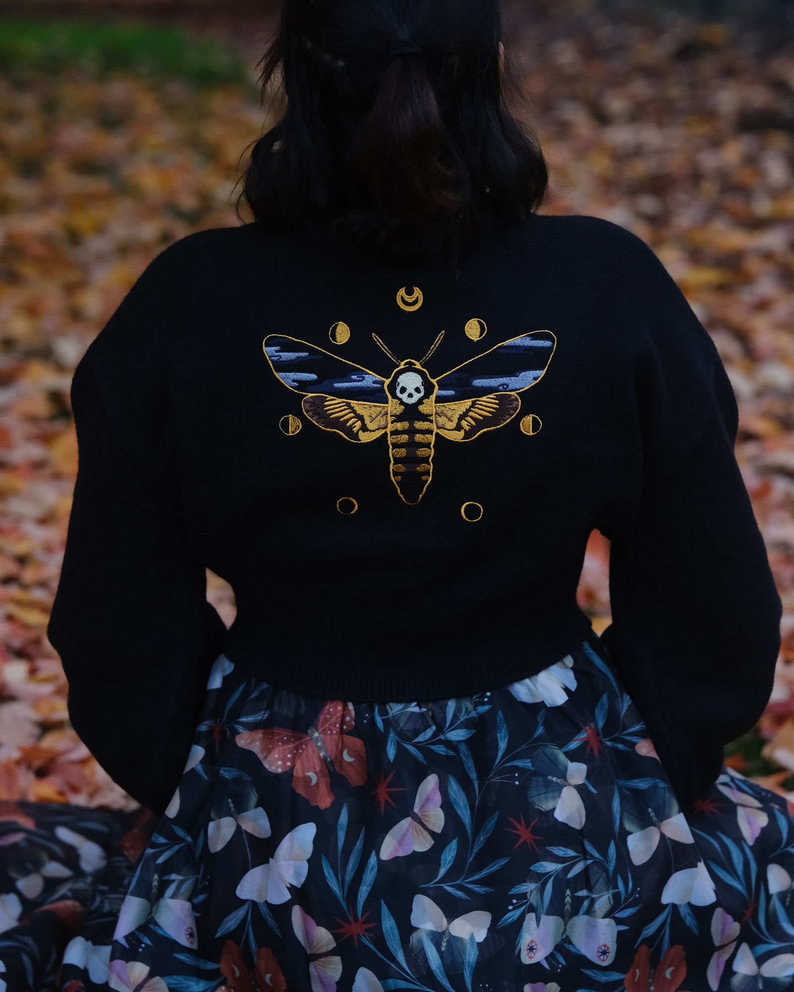 This sweater is a true fall/spring sweater, designed to keep one warm in chilly weather. The cardigan has a thicker knit material that prevents the cold breeze from coming through. We also added a thin layer of material on the the embroidery to prevent any itching that a large amount of embroidery may cause, just incase anyone wanted to wear a lighter top underneath. Match this product with any high waisted skirt, shorts, or jeans and you have an amazing fall or spring outfit!