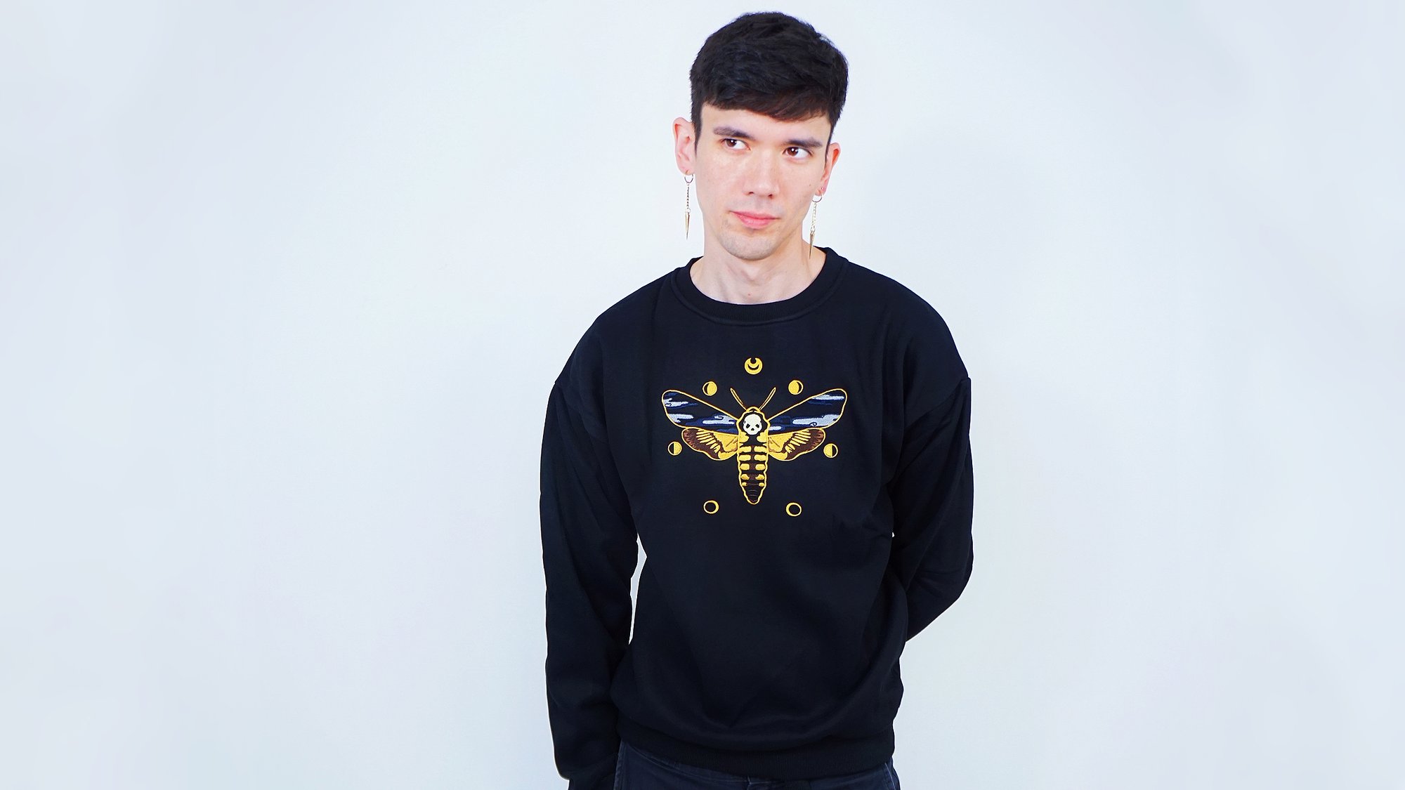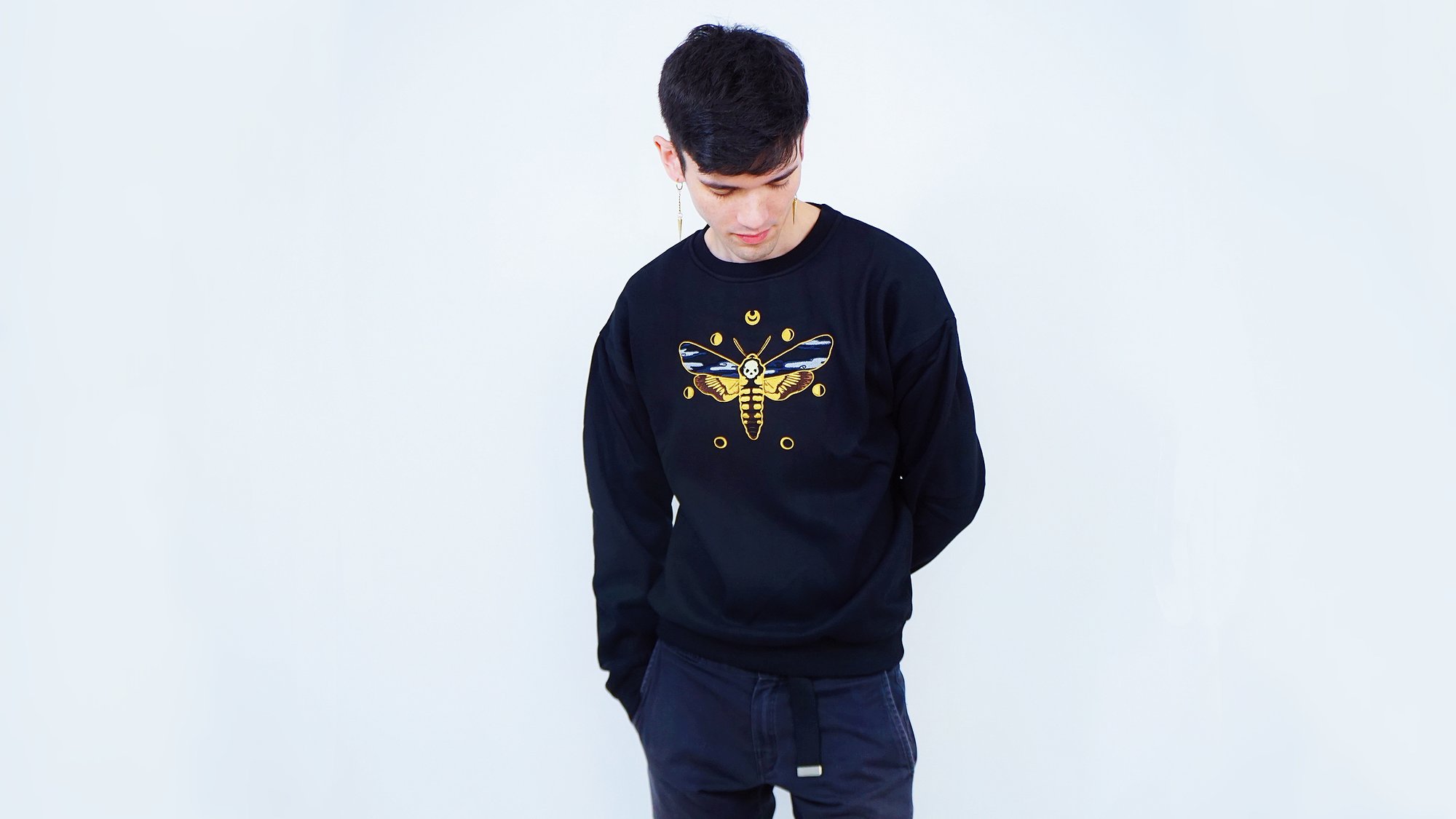 Many say this moth can symbolize a passing to the afterlife, but it can also symbolize letting something go in order to move on. The moth flies into the night holding clouds in its wings. It is surrounded by the ever-changing moon phases and at the top, the Sekai Art Shinjidai (New Era) moon. This moon represents taking something from a previous era and transforming it into a new version of itself.